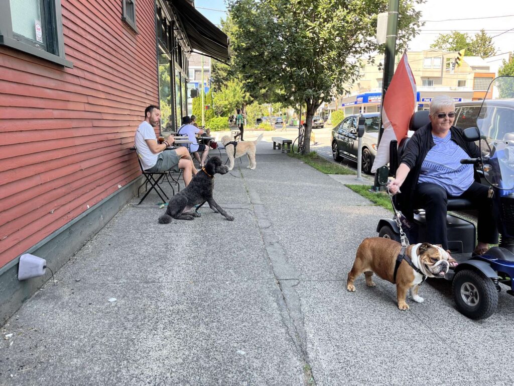 本屋の隣にはカフェがあって、犬がいっぱい。これまたたまらんロケーション。