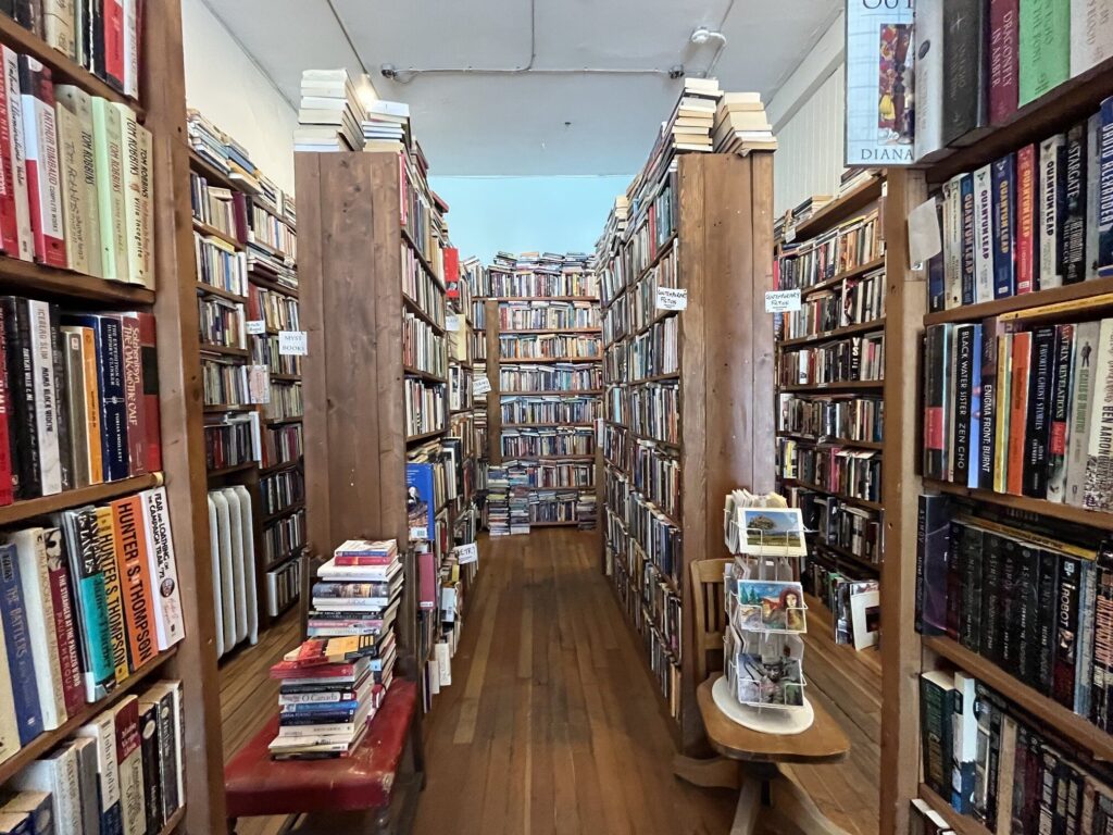 「本屋まわってるんだったら、あそこ行った?」とバンクーバーで2人にいわれたのがこちらのお店。古書中心、佇まいとこの存在感よ。16時30分閉店にすべりこもうと、16時10分にLyftを横付けしたのだけど、すでにクローズの看板が! 間に合わず、無念。