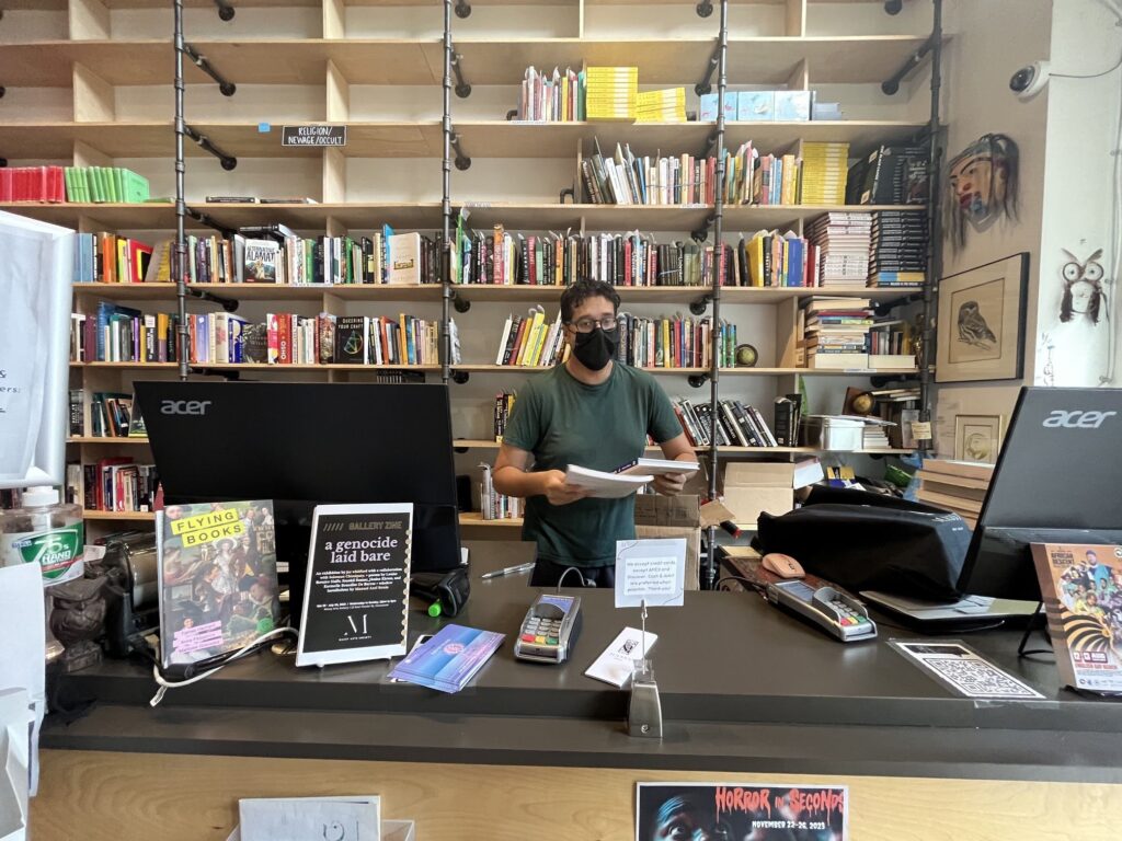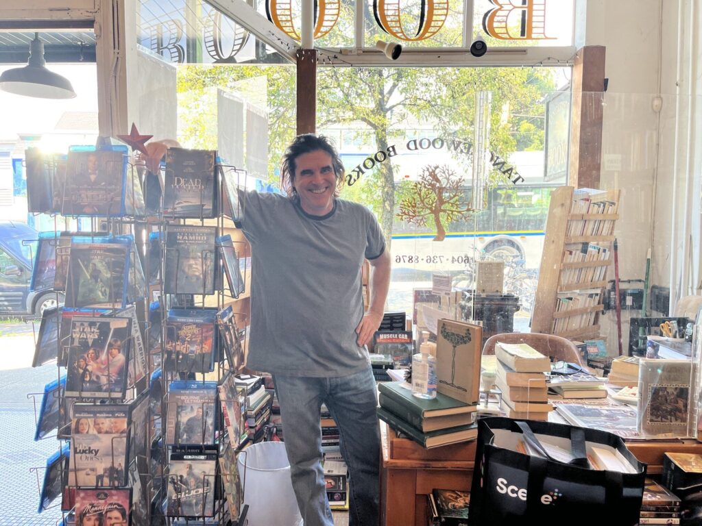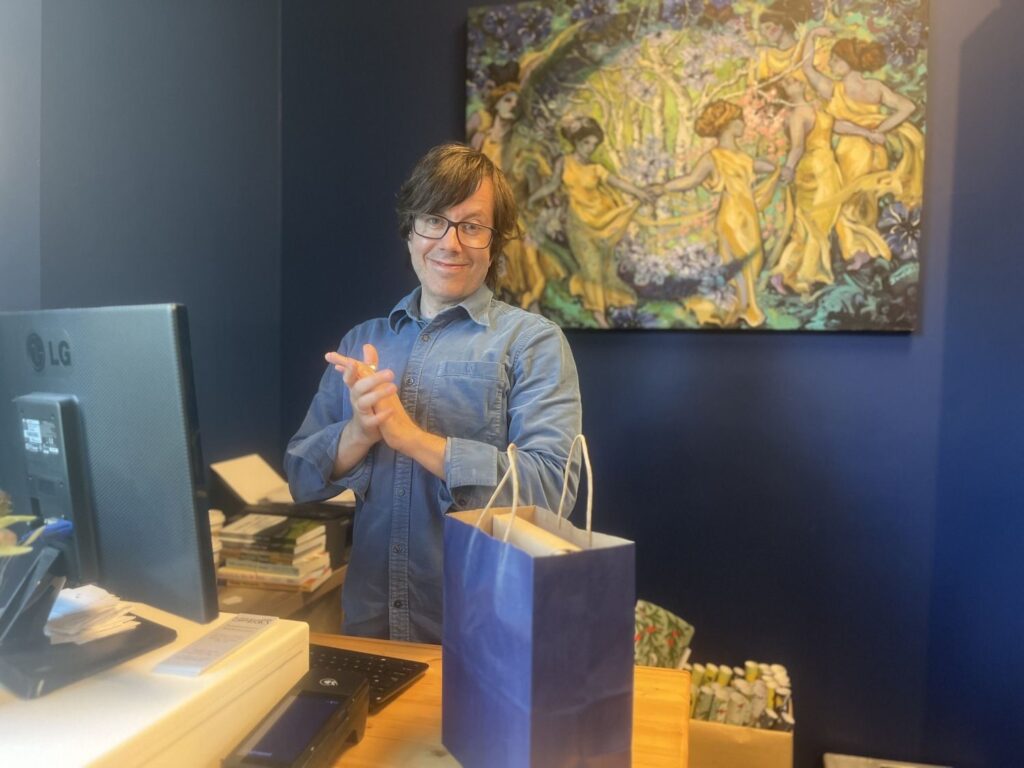 レジで日本からきたことと、編集者であることを伝えると、それはすごくいいね、いつまでいるの? とニコニコと会話を続けてくれる。「写真を撮ってもいいですか?」と聞いたら、「じゃあ、メガネはずさせてよ」とカッコよくポーズしてくれました。お店は1994年からあるんだって。