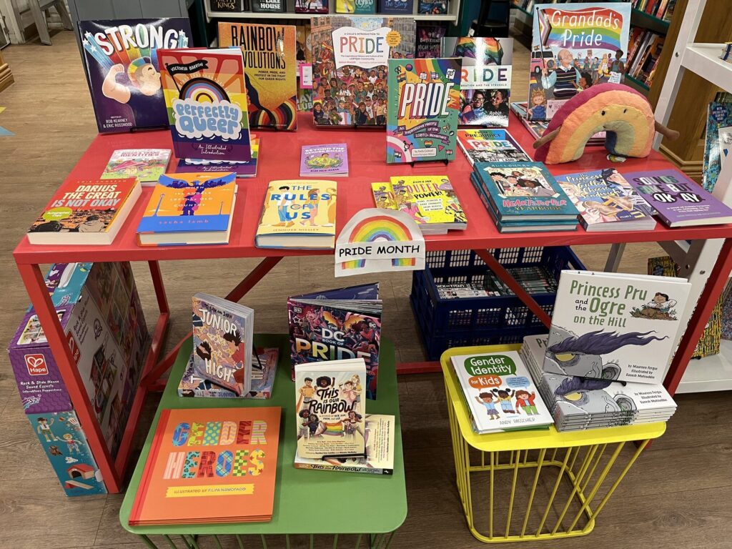 さきほどの本屋から5〜6分、歩いたところ。こちらは店名通り、子どものための本屋さん。6月は「プライド月間(Pride Month)」だったので、LGBTQ+の権利にまつわるテーマの棚がたくさんできていました。