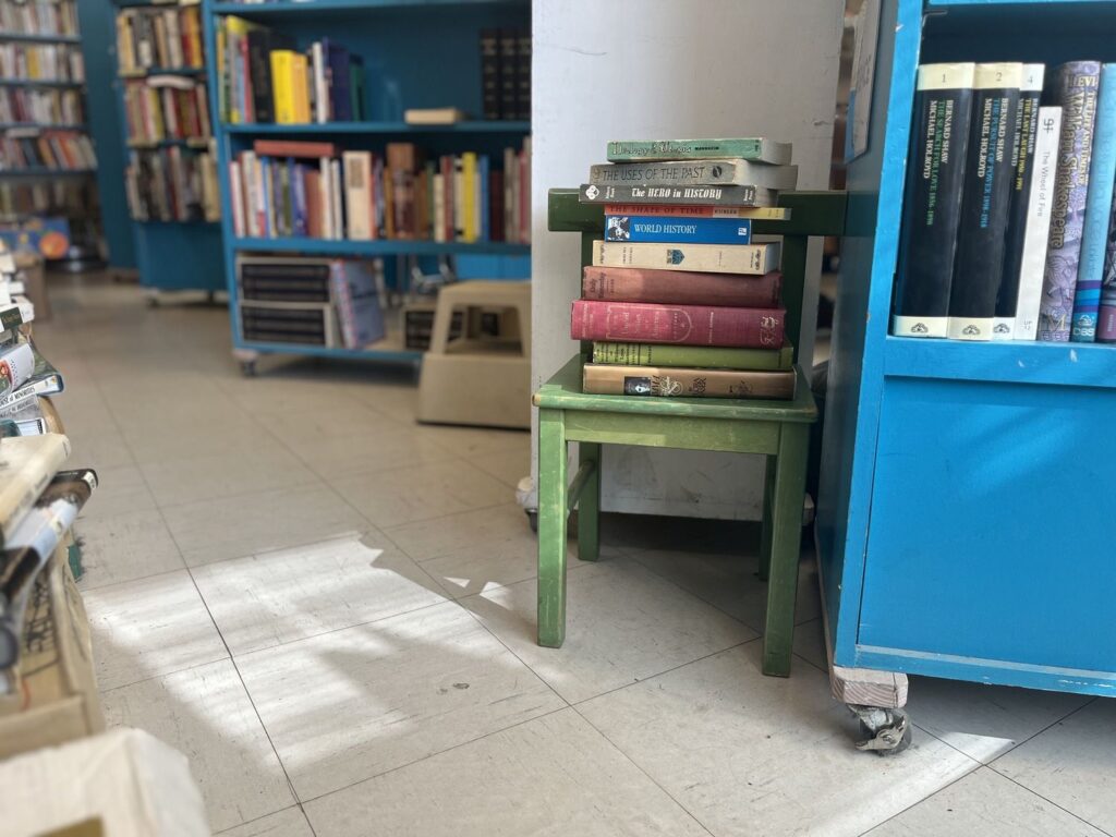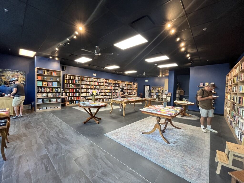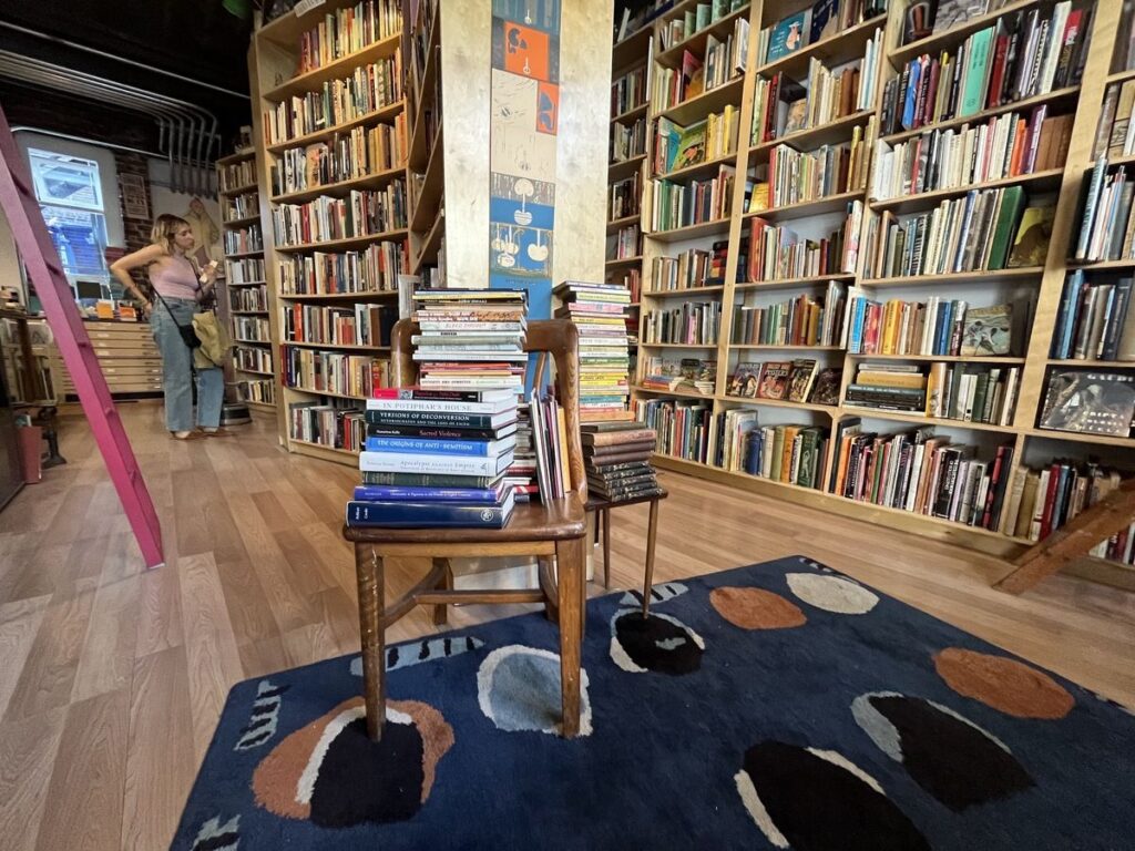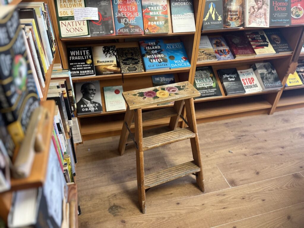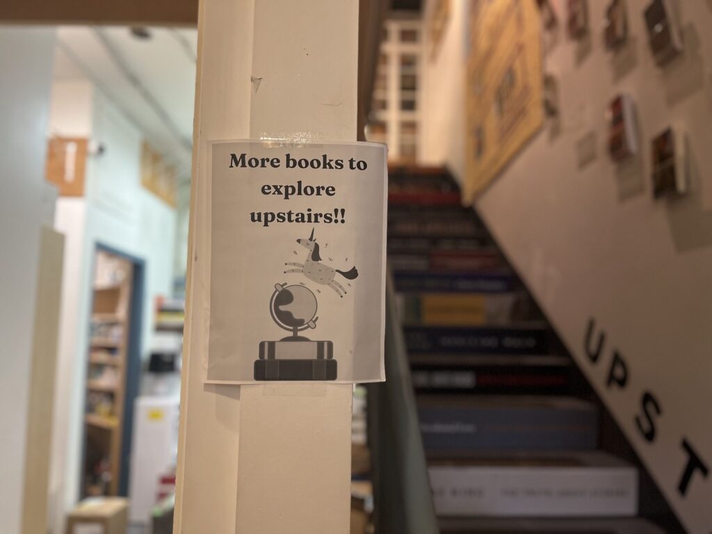 ユーモアが散らばっている店。ブックカバーごとサインになっていてすごくかわいかった。小さなイスの上に積読された本もよく見かけるけど、イスがカラフルな色をしているのがよいな。青い本棚も個性的すぎないし。