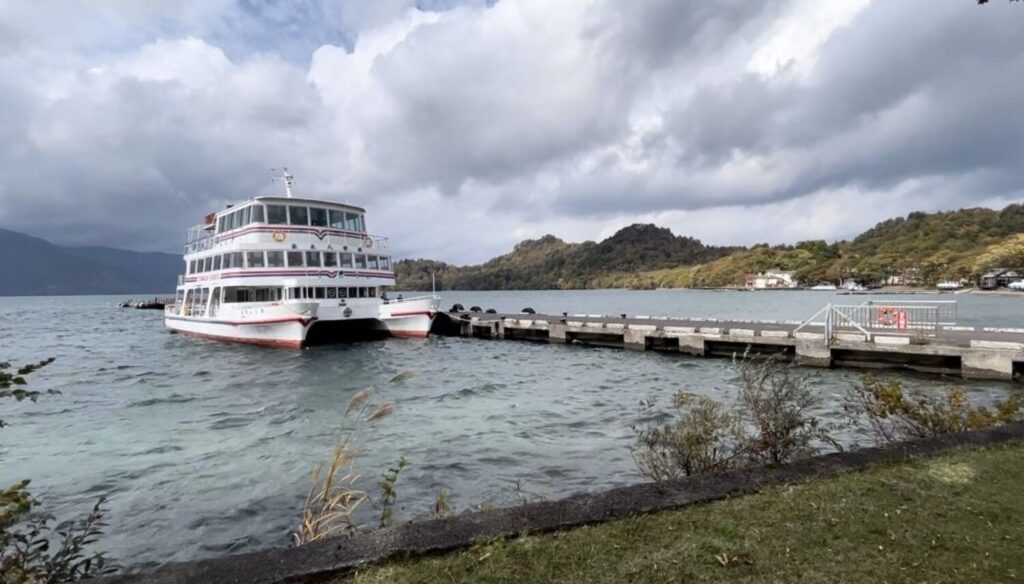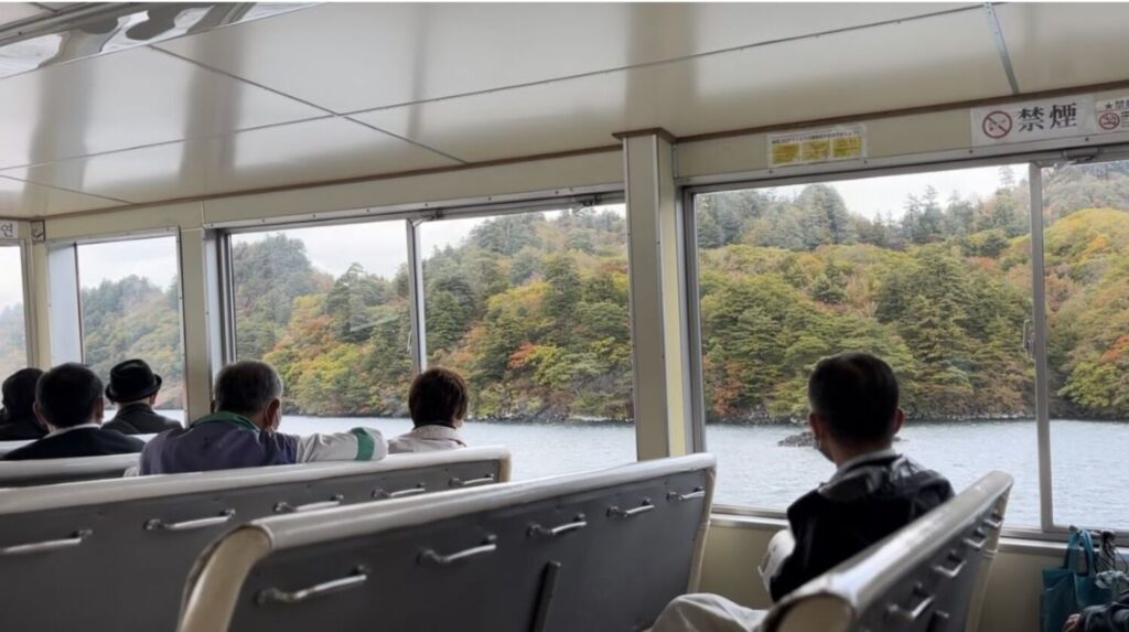 休屋(やすみや)と子ノ口(ねのくち)2箇所から、遊覧船が出ています。去年、ひとりでふらっと訪れたのですが、紅葉の季節とはいえ、平日はのんびりでじつに優雅。わたし、船に乗るのがとっても好きなのです。