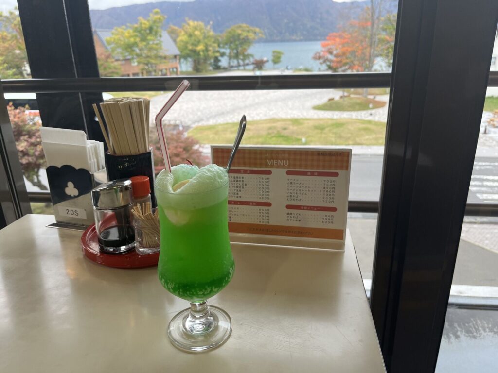下船したあとは湖畔をてくてく歩いて乙女の像にあいさつをし、十和田神社へ。最後にクリームソーダをのみながら十和田湖をながめるのコースがマイフェイバリット!